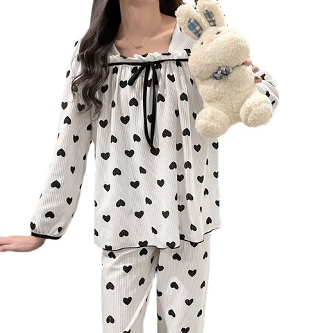 بيجامة نسائية للربيع والخريف على طراز الأميرة بأكمام طويلة بدلة من قطعة لطيفة ملابس منزلية حلوة